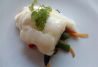 - Sardina ahumada con puerro, verdurita, jerez, rábano y pistacho (sin gluten)